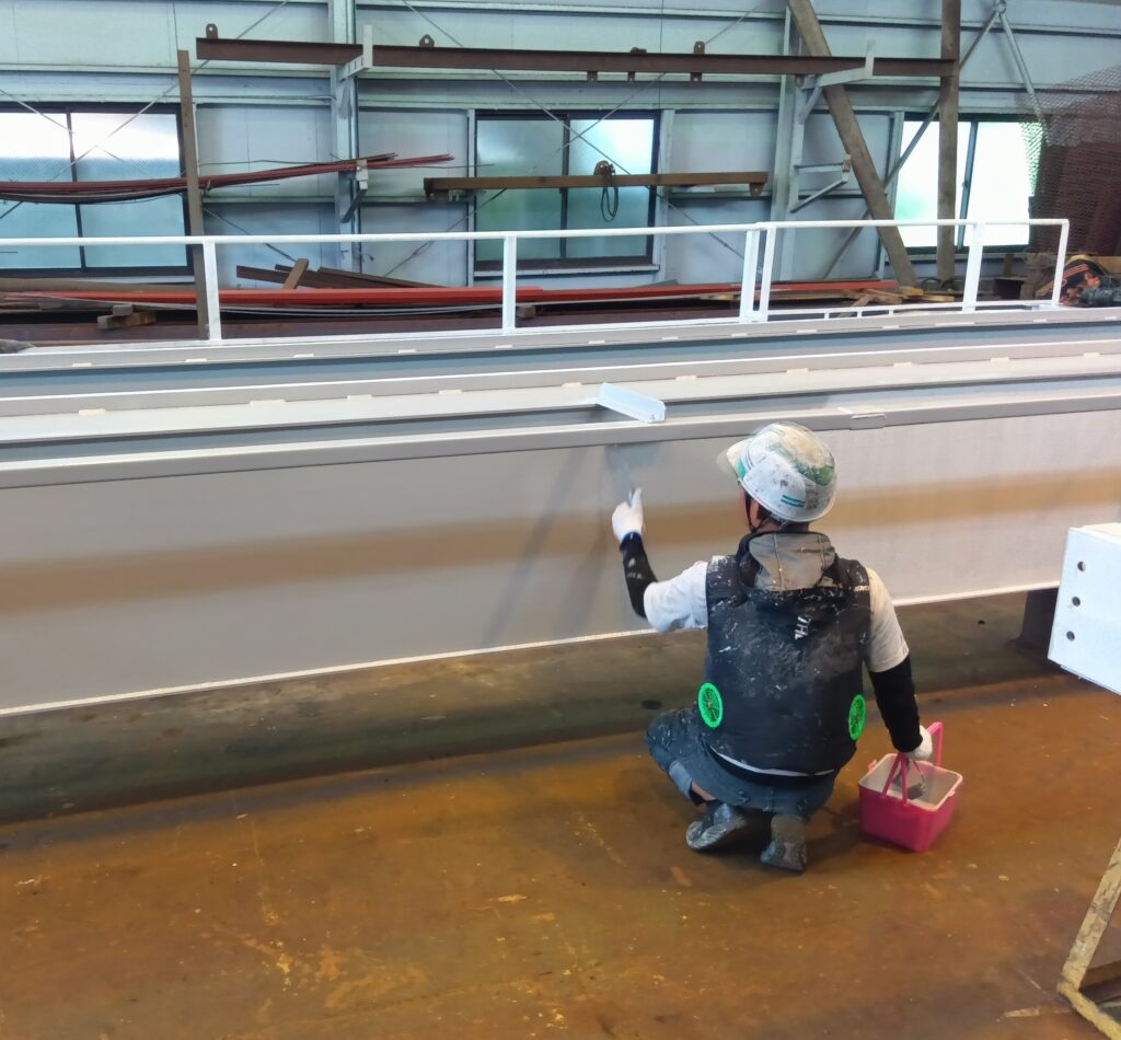 鋼材に付いているホコリや油を取り除いてから錆止めと仕上げの塗装を行っていきます。