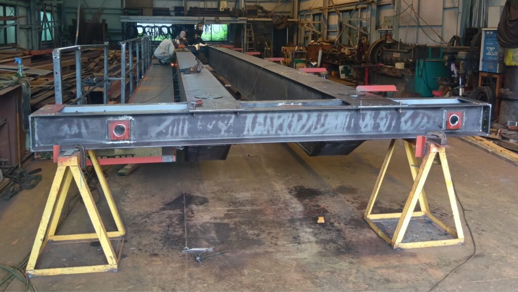 ガーダーが出来上がりましたら指定したレールのスパンに、クレーン本体の仮組立を行います。