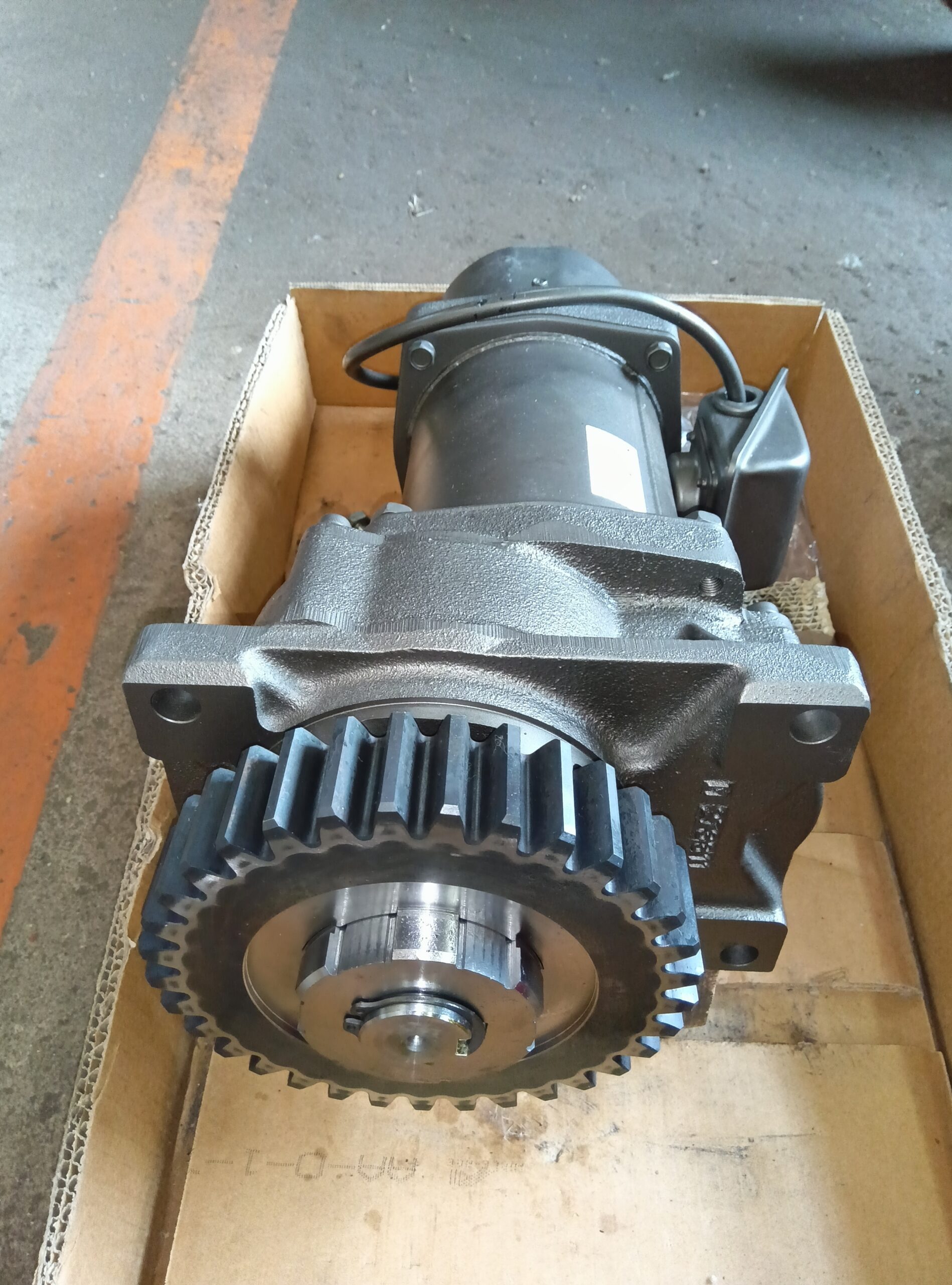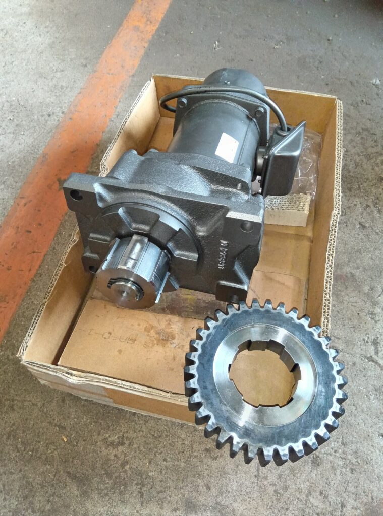 走行モーターより直径の大きな歯車を組付けるために、走行モーターにはスプライン軸を取付け、歯車にはスプライン穴加工を行いました。
